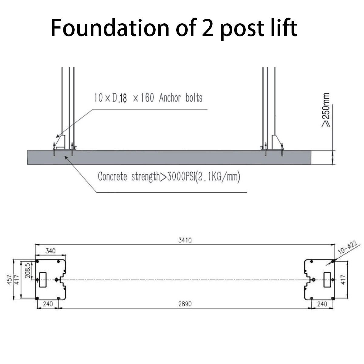 दो पोस्ट कार लिफ्ट तकनीकी विनिर्देश: