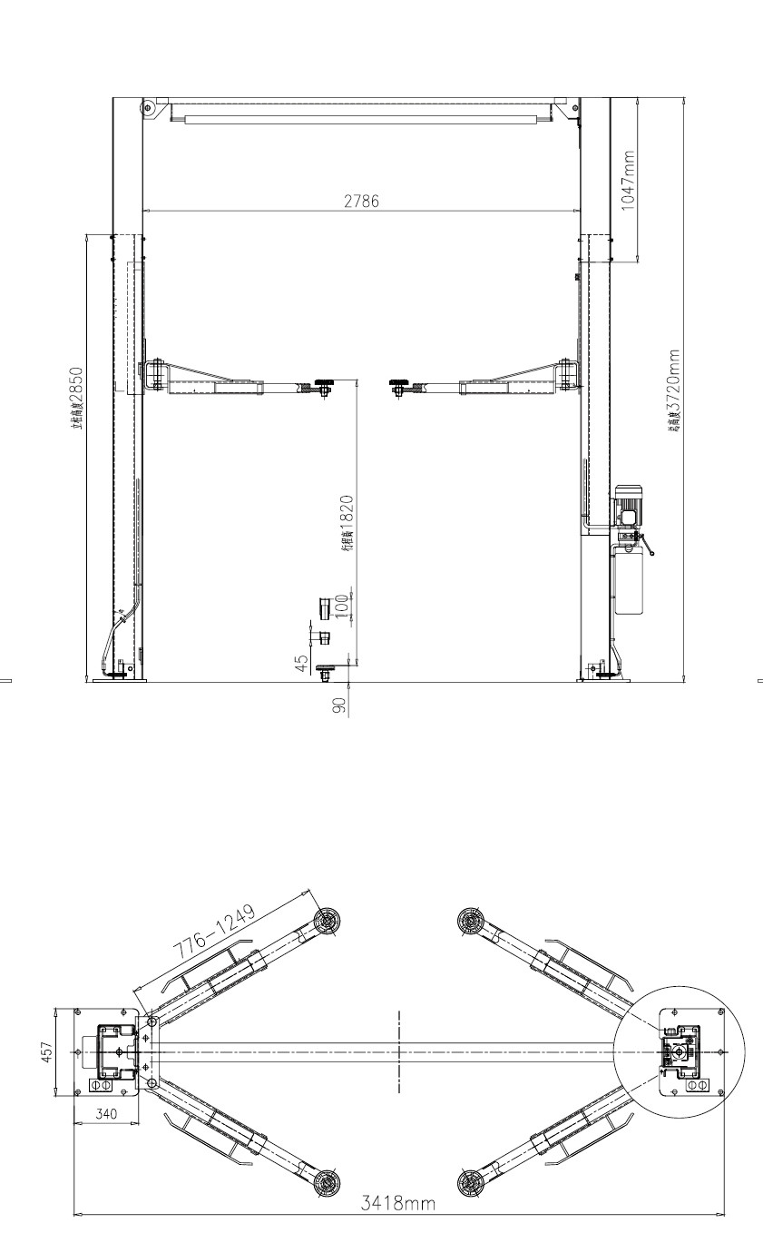 इलेक्ट्रिक 2 पोस्ट कार लिफ्ट तकनीकी विनिर्देश: