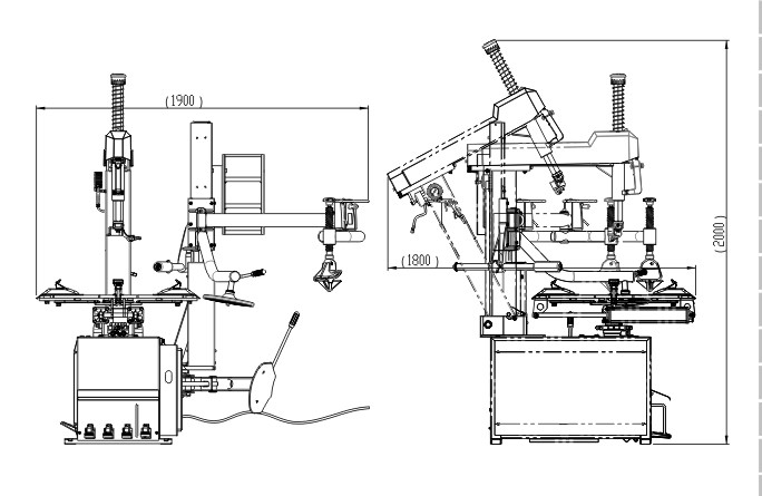 1) स्वचालित टायर परिवर्तक, कॉलम के पीछे और आगे झुकाव और कॉलम के लॉक को न्यूमेटिक रूप से प्रतिस्पर्धा की जा सकती है।