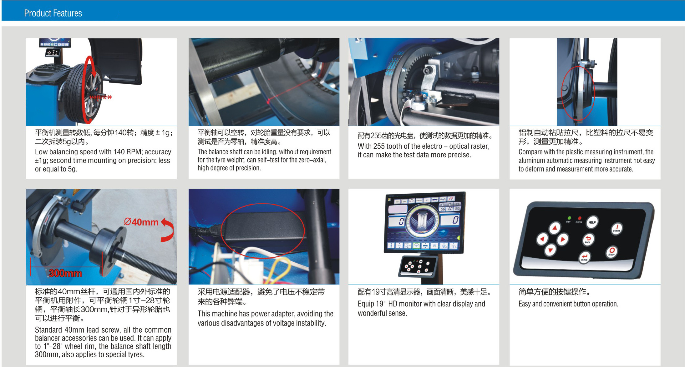 एलसीडी व्हील बैलेंसर विशेषताएं: