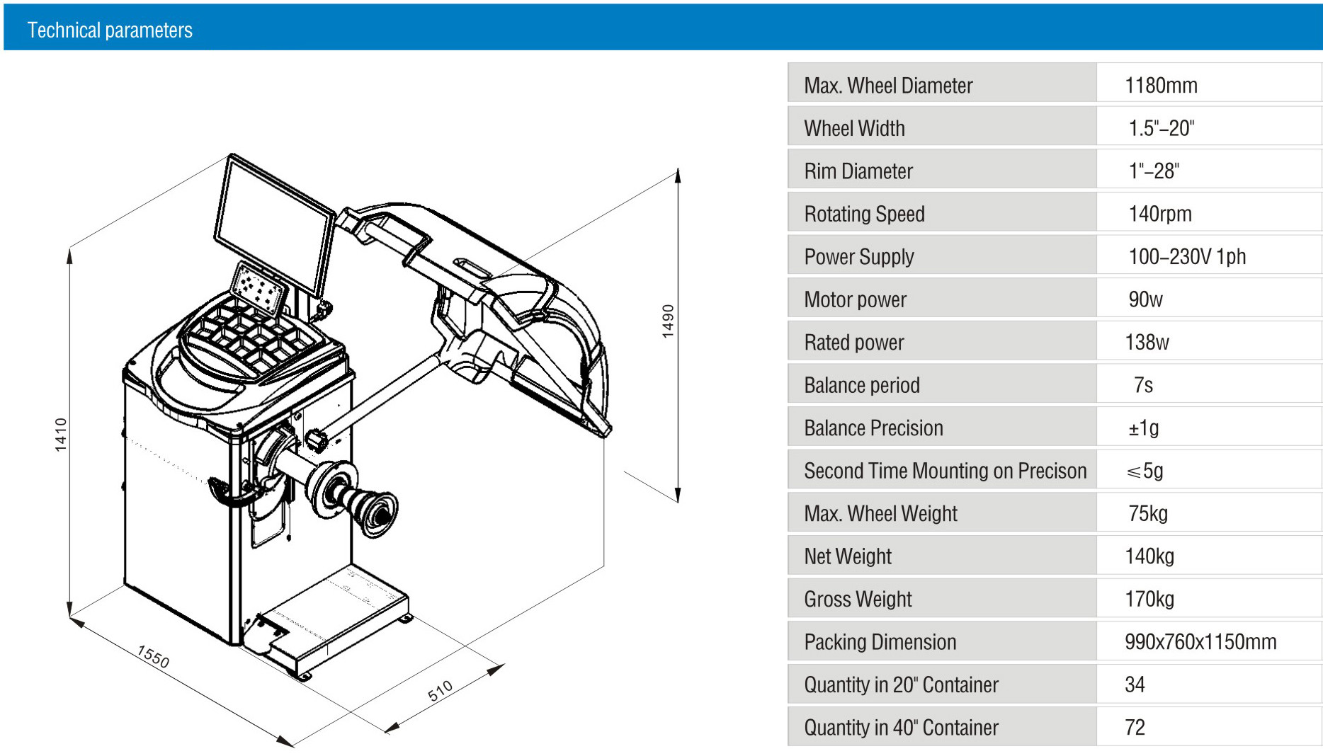 एलसीडी व्हील बैलेंसर तकनीकी विनिर्देश: