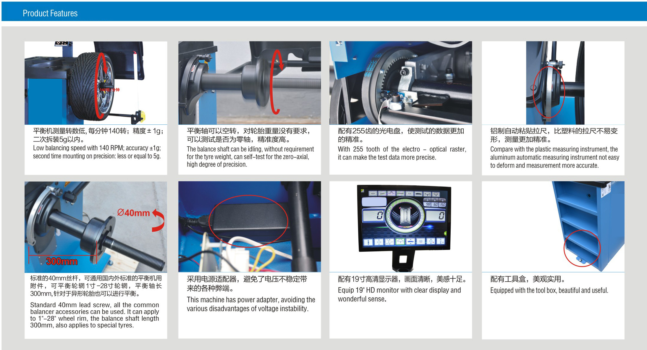 एलसीडी व्हील बैलेंसर विशेषताएं: